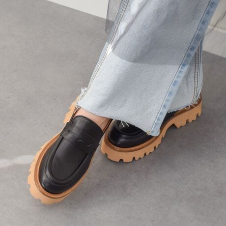 ラウンドトウの厚底ローファーは、軽量で滑りにくい形状のタンクソールを採用し、飽きのこないデザインなので、長くお使いいただけます。