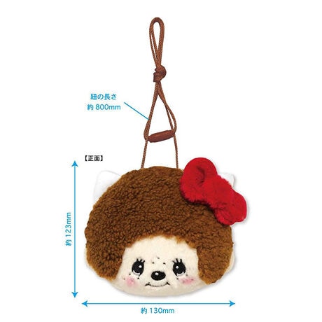 大人気のモンチッチがキティちゃんとコラボしました!こちらのシリーズはモンチッチがキティちゃんのおみみとリボンを付けてキュートに変身したシリーズです。ふわふわ生地がかわいいフェイスポシェットは安全パーツ付きなので小さなお子様にも安心してお使いいただけます◎◆紐の長さ:約80cm