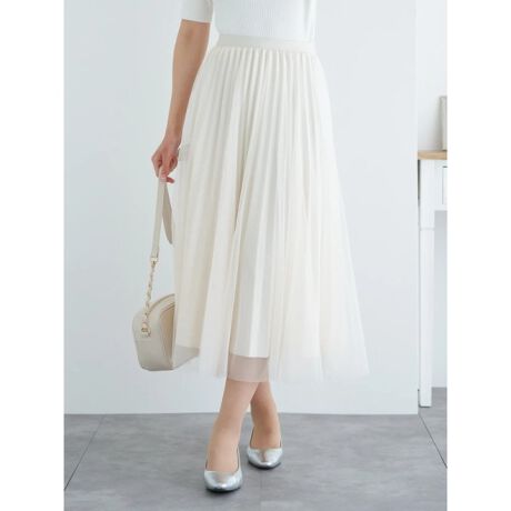 キラキラとした輝きが装いを華やかに演出してくれるチュール重ねのロングスカート。