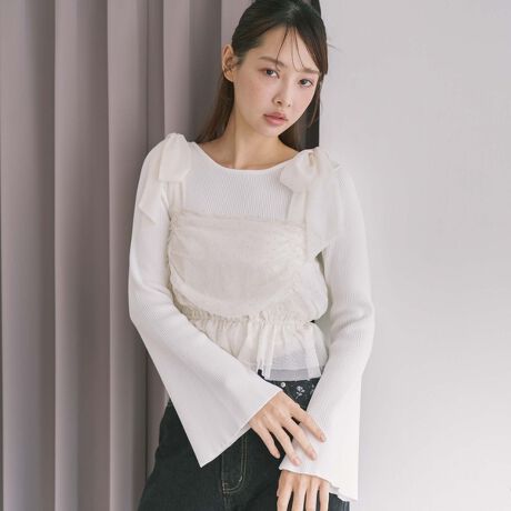 ビジューチュールビスチェ×フレアリブニットSET