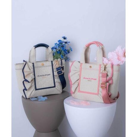 JILL by JILL STUARTのアイコンバッグ「フリルトート」5周年を記念して登場!ボリュームあるワイドフリルと額縁のような配色テープディテールがポイント。従来のフリルバッグとは異なるロゴの書体とサイズ、フリルも大人っぽく仕上げています。ハンドル部分には合皮素材を合わせて、品の良さと実用性も兼ね備えました。取り外しできるショルダー付きの2Way仕様。中は便利なポケット付き。※撮影時照明の関係により、色味が違って見える場合がございます。またパソコン・スマートフォンなどの環境により、若干製品と画像のカラーが異なる場合もございます。予めご了承ください。商品の色味は、商品単品画像をご参照下さい。※商品画像はサンプルのため、色味やサイズ等の仕様に変更がある場合がございますので、予めご了承ください。