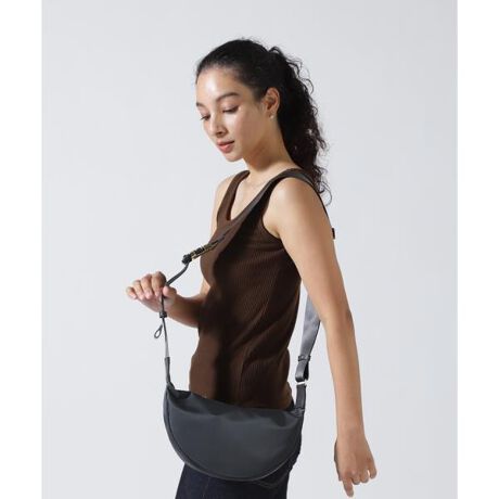 弱撥水性のあるカジュアルなナイロン素材に金具のゴールド使いが女性らしいボディバッグ。
