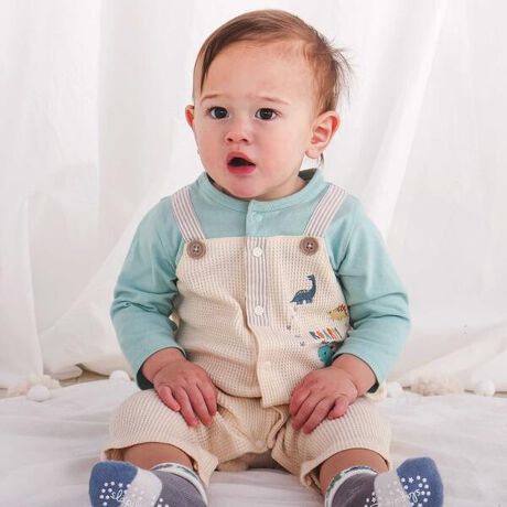 サロペット風ドッキング恐竜刺しゅうロンパースベビー(60~80cm)