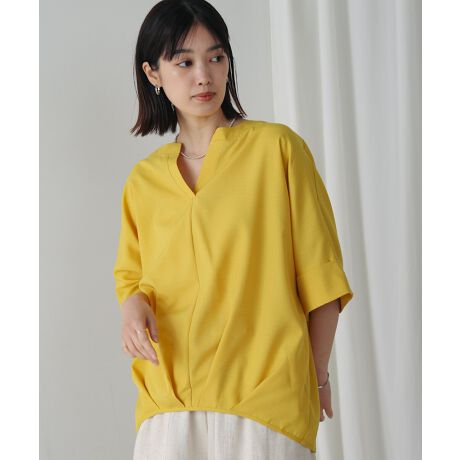 麻ライクキーネックタックブラウス