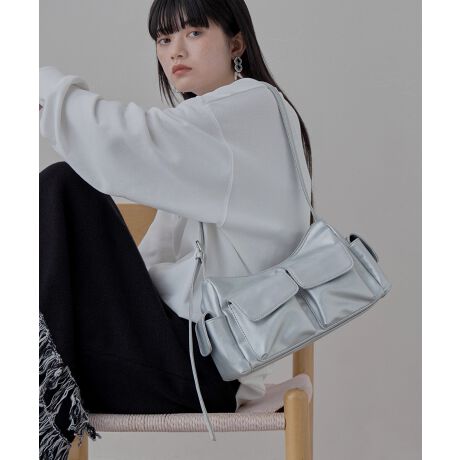 etoll. エトル 存在感のあるアウトポケットと適度な光沢感としわ感のある素材でモードな雰囲気も足し算してくれる、マルチポケットデザインバッグ。