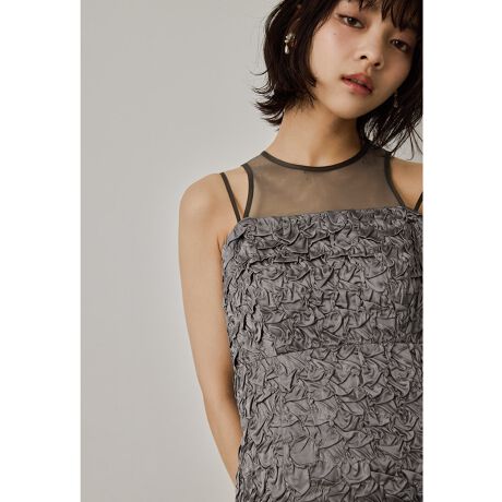ヨーク部分には透け感のあるチュール素材を使用することで抜け感のある印象に。