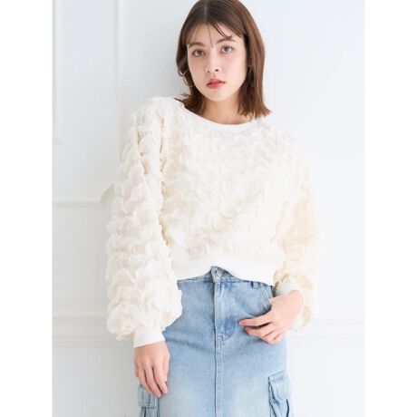 ふんわりとしたふくれジャガードが表情感を演出するプルオーバー。