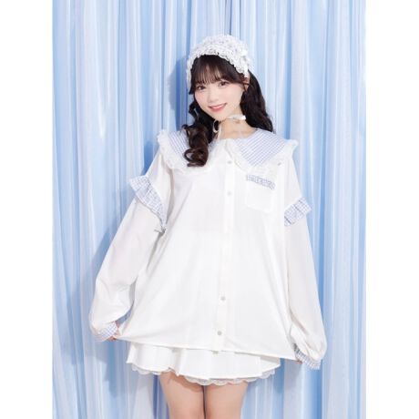 ギンガムチェック×フリルで甘さたっぷりに仕上げたガーリーなブラウス。