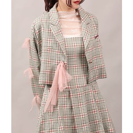 【Y2Kレトロかわいい?】セットアップ可能のチュールリボン&チェック柄のジャケット