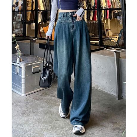 トレンド感あふれるハイウエストワイドデニムパンツが登場!ゆったりとしたシルエットが動きやすく、スタイルアップ効果も抜群です。ホワイト、ネイビー、ライトブルーの3色展開で、カジュアルからモードまで幅広いコーデに対応。どんなトップスとも合わせやすい万能アイテムです。