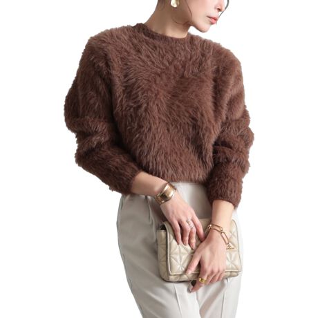 ふわふわのファー生地がリッチに季節を彩るトレンド感溢れる大人アイテム。クルーネックの首元は柔らかな印象を重ねつつ、ハイネックインナーとのレイヤードも好相性。シアー素材のインナーを重ねればトレンド感アップ。コンパクトな丈感ですっきりとしたシルエットに。ふわふわのファーでシンプルながらも秋冬ファッションを盛り上げ、コーデに投入するだけで着映え感を加速させ、上品さをプラス。モタつきのない丈感だからボトムスを選ばず、スタイリングの幅を広げます。秋冬のコーデに是非取り入れたいファーアイテム。