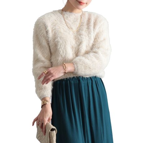 ふわふわのファー生地がリッチに季節を彩るトレンド感溢れる大人アイテム。クルーネックの首元は柔らかな印象を重ねつつ、ハイネックインナーとのレイヤードも好相性。シアー素材のインナーを重ねればトレンド感アップ。コンパクトな丈感ですっきりとしたシルエットに。ふわふわのファーでシンプルながらも秋冬ファッションを盛り上げ、コーデに投入するだけで着映え感を加速させ、上品さをプラス。モタつきのない丈感だからボトムスを選ばず、スタイリングの幅を広げます。秋冬のコーデに是非取り入れたいファーアイテム。