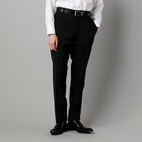 スラックスは膝から裾にかけてシェープを効かせたテーパードシルエットで、美脚効果が期待できます。