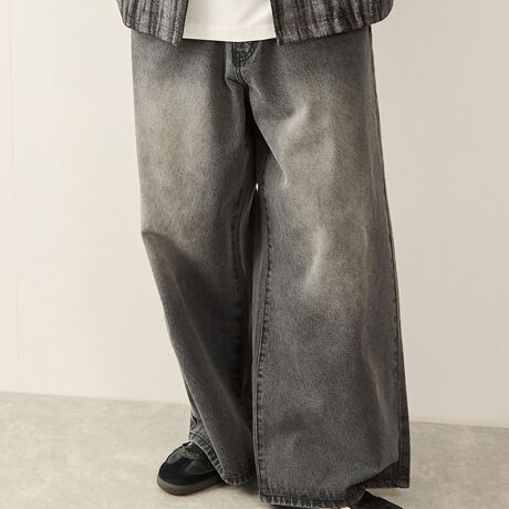 ブラックデニムをベースに洗いを抑えた深めのブラックカラーとミディアムトーンのグレー、ハイウォッシュ+オーバーダイのメリハリの効いたパープルの3色に加え、グレイッシュなブルーにベージュ系の染料でオーバーダイを施したインディゴカラーの全4色展開