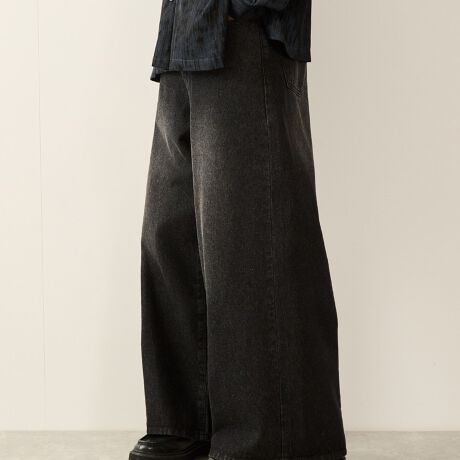ブラックデニムをベースに洗いを抑えた深めのブラックカラーとミディアムトーンのグレー、ハイウォッシュ+オーバーダイのメリハリの効いたパープルの3色に加え、グレイッシュなブルーにベージュ系の染料でオーバーダイを施したインディゴカラーの全4色展開