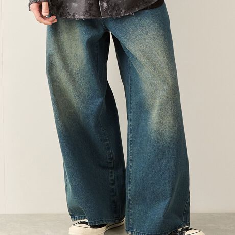 ブラックデニムをベースに洗いを抑えた深めのブラックカラーとミディアムトーンのグレー、ハイウォッシュ+オーバーダイのメリハリの効いたパープルの3色に加え、グレイッシュなブルーにベージュ系の染料でオーバーダイを施したインディゴカラーの全4色展開