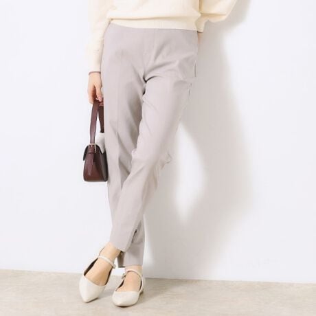 裾に細めの共地リボンが付いたハイパーストレッチパンツ