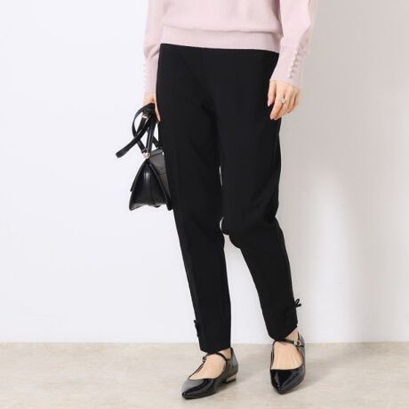 裾に細めの共地リボンが付いたハイパーストレッチパンツ