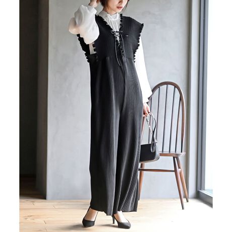 レースアッププリーツオールインワン