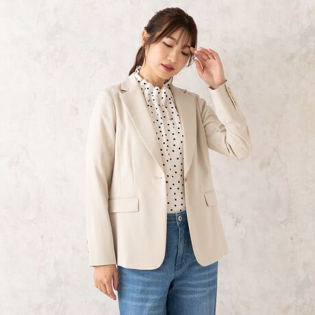 ブラウス感覚で着られるツイル生地を使用したテーラードジャケット。