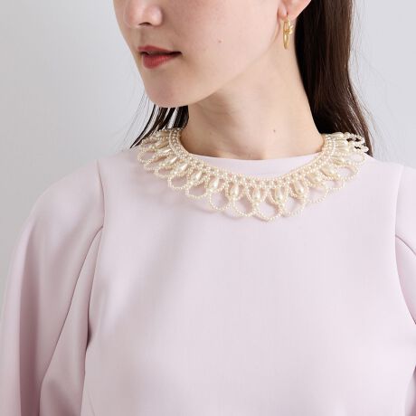 ー振り幅のある装いにプラスオンつけ襟風のパールネックレスー