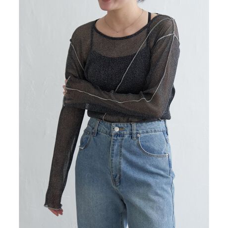 シアー感のあるラメチュール素材のプルオーバー。