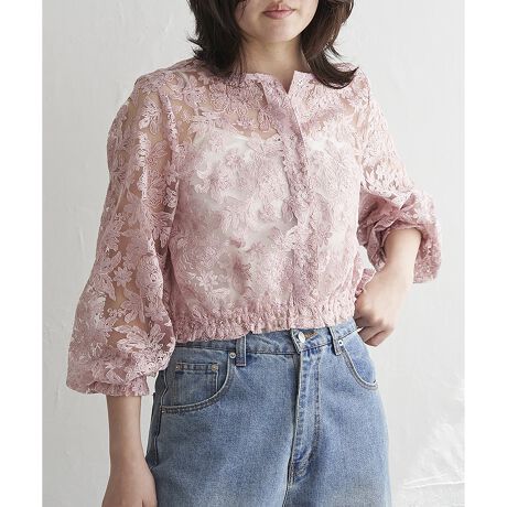 繊細な刺繍レースを贅沢にあしらった、華やかなオーガンジーブルゾン。