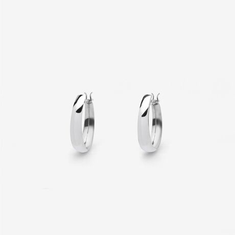 神秘的な輝きを放つプラチナが耳元を上品に彩るフープピアス。