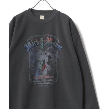 Disney/ディズニー ヴィンテージライク ピグメント風 フロント バックプリント 裏起毛 オーバーサイズ スウェット レディース メンズ トレーナー