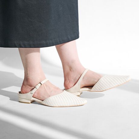 編み込みが今年らしく、履くだけでトレンドライクにキマる一足。