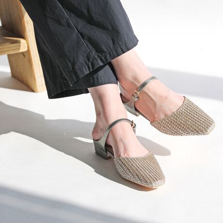 編み込みデザインが涼しげな印象のメッシュミュール。