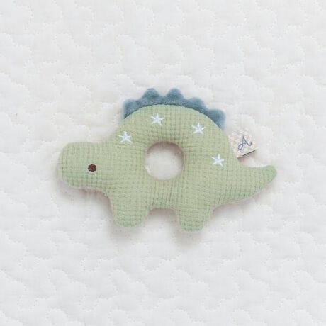 apres les cours(アプレレクール)のおもちゃ「きょうりゅうラトル」は、かわいいモチーフのデザインで、ベビーギフトや出産祝いにもおすすめ♪
