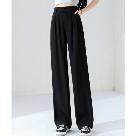 ストンとしたデザインで足長効果大!シンプルデザインのセミワイドパンツです。