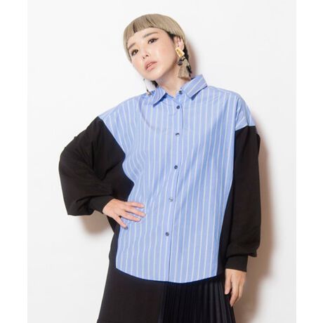 プレッピーなカジュアルストライプと、裏毛のボリュームスリーブをMIX。