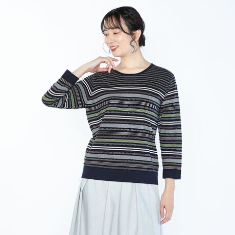 ジャカードボーダー八分袖ニット