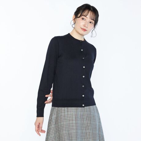 コットンのハイゲージニットですっきりとした印象に仕上げたカーディガン。春先の羽織りとしてはもちろん、ジャケットなどのインにも合わせられる、フィット感のあるシルエットです。首に沿うようなラウンドネックを採用した、エレガントな佇まい。スカートにもパンツにも合わせやすいアイテムです。