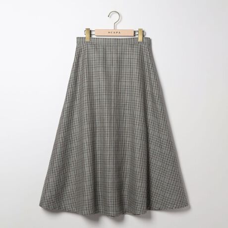 トラディショナルな雰囲気を纏えるチェック柄のツイードスカート。表地にイギリス製の毛と麻のブレンド生地を採用。トップスインがきれいに仕上がるハイウエストデザイン。裾に向かって優美に広がるフレアシルエットが美しく、エレガントなスタイルを叶えてくれます。
