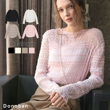 ドットとフリルテイストが盛り込まれた可愛い生地が主役級の大人気トップスから新色が登場。