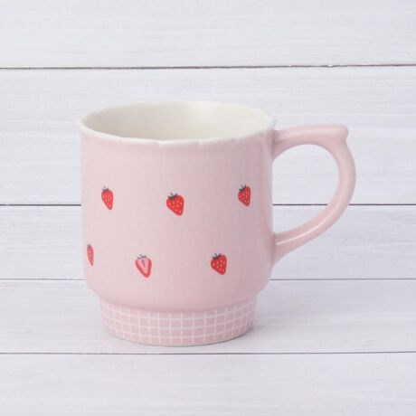 デイリー使いにぴったり。小さなフルーツたちが並ぶ春色のマグカップです。