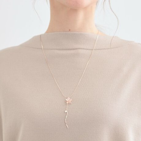 サクラモチーフが際立つデザインで、Y字ラインが首元を美しく演出します。