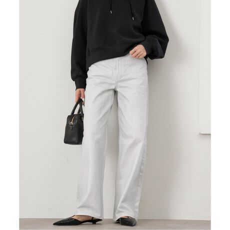 ウエスト周りはすっきりとさせたハイライズで、膝や裾は大きく取ったワイドストレートデニム。