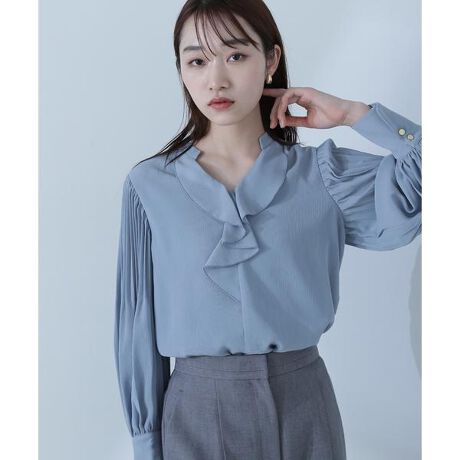 スキッパーネックにラッフルフリルのデザインで、首まわりをすっきりと見せながら、大人フェミニンな印象で着られるキレイめブラウス。袖はアコーディオンプリーツで華奢見えしながら、ふんわりとしたボリューム感を出した華やかな一枚。スカートでもパンツでも相性が良く、デイリーでもオフィスシーンでも着まわし力は抜群です。<素材>軽く柔らかい風合いの楊柳素材を使用。袖はアコーディオンプリーツ加工を施しています。<詳細>仕様・後ろボタン裏地・あり透け感・ややあり / 光沢・なし / 伸縮性・ややあり 生地の厚さ・薄手※モデルの着用画像の場合、光の当たり具合により、実際の色味と異なって見えることがございます。