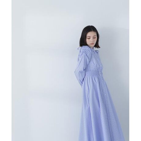細かいマルチストライプ柄が今年らしい印象に見せてくれるシャツワンピース。袖山にギャザーを寄せてフェミニンな雰囲気を出し、華奢なリボンがアクセントになっています。ウエストはしっかりとシャーリングが入っているので、フィット感のある着心地◎。一番上のボタンを開けて着ると、首元に抜け感が出るのでオススメ。ONOFF両方のシーンで着用いただけます。<素材>ハリ感のあるコットンタッチのマルチストライプ素材を使用しています。<詳細>仕様・前ボタン裏地・あり透け感・なし / 光沢・なし / 伸縮性・なし 生地の厚さ・普通※モデルの着用画像の場合、光の当たり具合により、実際の色味と異なって見えることがございます。色味は、商品単体の画像をご参照ください。