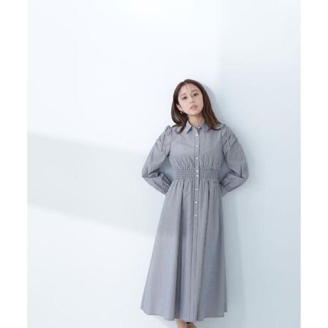 細かいマルチストライプ柄が今年らしい印象に見せてくれるシャツワンピース。袖山にギャザーを寄せてフェミニンな雰囲気を出し、華奢なリボンがアクセントになっています。ウエストはしっかりとシャーリングが入っているので、フィット感のある着心地◎。一番上のボタンを開けて着ると、首元に抜け感が出るのでオススメ。ONOFF両方のシーンで着用いただけます。<素材>ハリ感のあるコットンタッチのマルチストライプ素材を使用しています。<詳細>仕様・前ボタン裏地・あり透け感・なし / 光沢・なし / 伸縮性・なし 生地の厚さ・普通※モデルの着用画像の場合、光の当たり具合により、実際の色味と異なって見えることがございます。色味は、商品単体の画像をご参照ください。