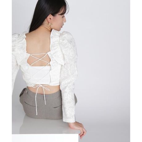 <BLANC>今のほしいをここに。自分らしく、自由なスタイリングを楽しみたい。洗練されたCLASS感と“今”を感じるモードフェミニンなアイテムを提案します。刺しゅうをふんだんに入れたレース生地と大胆なバックシャンデザインが特別感のあるコンパクトシルエットのブラウス。バックスタイルのレースアップは調節可能です。ボトムはデニムを合わせたMIXスタイルがオススメ。春に着たいピンクとオフカラーの2色展開です。<素材>刺しゅうを施した、軽い着心地の生地を使用しています。<詳細>仕様・開閉なし裏地・なし透け感・なし / 光沢・なし / 伸縮性・なし 生地の厚さ・普通※モデルの着用画像の場合、光の当たり具合により、実際の色味と異なって見えることがございます。色味は、商品単体の画像をご参照ください。