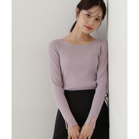 ボートネックリブニット