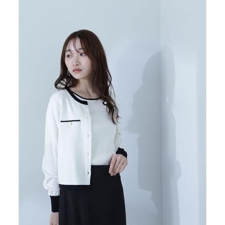 コンパクトな丈感のカーディガンとシンプルな半袖リブニットのアンサンブル。カーディガンはクラシックな雰囲気のバイカラーラインを入れたNBBオリジナルの一枚。シンプルなゴールドカラーの釦もアクセントになります。半袖リブインナーの襟ぐりにもバイカラーラインを入れているので、一枚で着た時も映えます。アンサンブルはもちろん、単品使いにも便利なセットアイテム。ボトムスを選ばず着ていただける、ベーシックな色味と春らしいイエローの3色展開です。<素材>柔らかくて温もりがあり、品の良いハイゲージの天竺ニットカーディガンと、リブインナーを使用しています。<詳細>仕様・前ボタン裏地・なし透け感・なし / 光沢・なし / 伸縮性・あり 生地の厚さ・普通※モデルの着用画像の場合、光の当たり具合により、実際の色味と異なって見えることがございます。色味は、商品単体の画像をご参照ください。