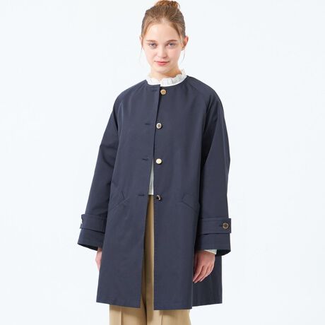<愛らしいAラインシルエットが魅力のノーカラーコート>