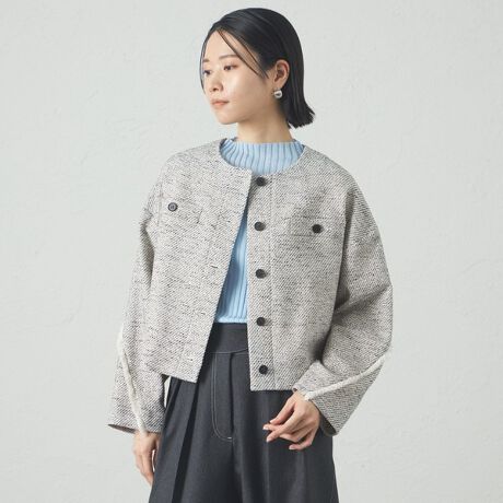 ツイードらしい表面感がありながらも、さらっと羽織れる軽さが特徴です。