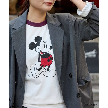 「MICKEY」プリントのリンガーTシャツがお目見え。